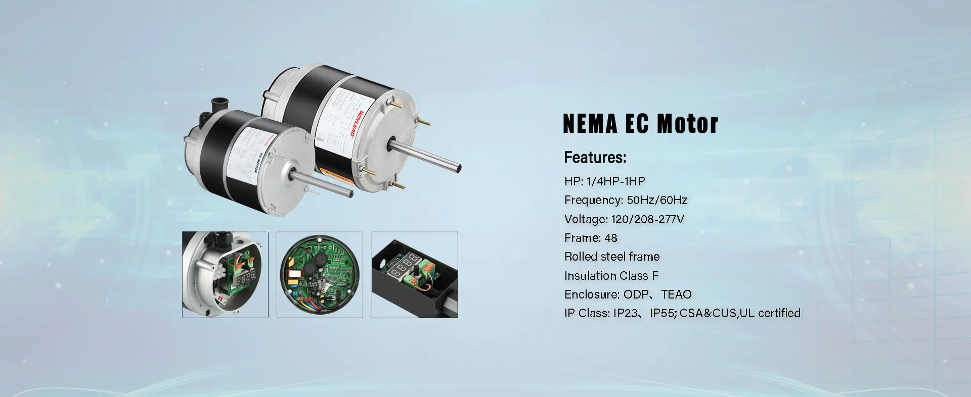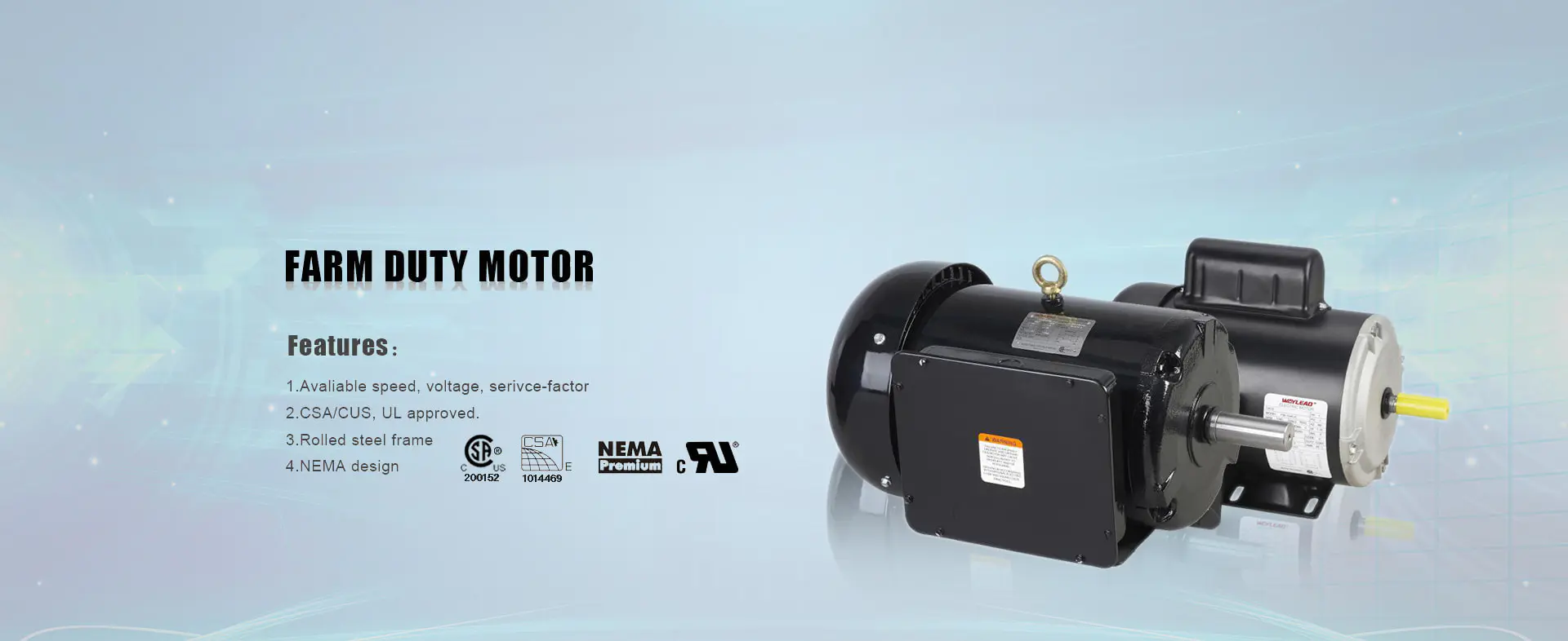 Waylead Motor Manufacturer, who was one division of Cixi Huili, registered the "WAYLEAD" logo in China, Canada and U.S.A in the year of 2008. Waylead is a National Hi-Tech Private Enterprise that specializes in researching, developing , manufacturing, sales and service.